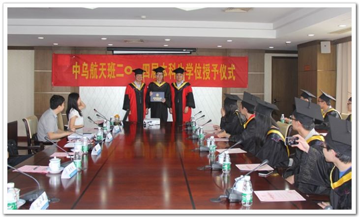 6月22日上午,我校“中乌航天班”2014届本科生毕业典礼暨学位授予仪式在明故宫校区举行。副校长吴庆宪出席仪式,航天学院党委书记刘建成、院长陈卫东、校相关职能部门负责人、部分学生家长代表参加。仪式由航天学院党委副书记戴泉晨主持。 中乌航天班是由南京航空航天大学与乌克兰茹科夫斯基国立航空航天大学联合开展的双学历教育,于2007年首次招生,至今已有四届毕业生学成归国。会议一开始,戴泉晨代表学校和家长对各位同学平安学成归来表示热烈欢迎和祝贺。 2014届中乌航天班班长王顺飞同学代表全体中乌班学子向母校汇报了两年中,同学们不断克服环境和语言上的困难,生活上自立自强,学习上勤奋努力,不断进步和成长的经历,回顾了班级同学在面对动荡局势团结一致、互帮互助的在乌学习生活历程,并代表2014届全体中乌班同学对社会各界的关心,尤其是对学校、学院领导和老师的关怀支持表示诚挚感谢。 与会老师和家长对本届毕业班学生能够在课程学业负担重、外部环境复杂情况下,仍然能够保持积极良好心态、彼此鼓励、共同圆满完成学业的精神和行动表示赞许和肯定,并对他们以后的发展寄予厚望。 本届中乌班的16名学生以流利的俄语完成了毕业答辩,乌克兰校方已为他们颁发了学位证和毕业证。回到南航后,一场规模虽小但很正式的学位授予仪式让同学们倍感兴奋,他们穿上学士服,戴上学位帽,接过学位证,这一刻,令现场所有的老师和家长们倍感欣慰。会上,部处领导还为14届中乌班同学们颁发了2012-2014两学年的获奖荣誉证书。 吴庆宪代表学校对同学们在国内和国外取得的优异成绩表示祝贺,并以聂宏校长在全校毕业典礼上对全体毕业生提出的十二字寄语“志于道,据于德,依于仁,游于艺”嘱托同学们要做一个志存高远的人,做一个品德高尚的人,做一个文明友善的人,做一个自由愉快的人。 授予仪式结束后,同学们和在座的全体领导、老师一起合影留念。 ![]() ![]() |