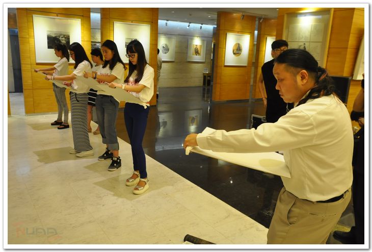 为了体现“把艺术带回家”这一主题,开幕式上,王立庆和学生团队一对一为现代快报推荐的6位市民速写肖像,与读者进行了互动式体验。