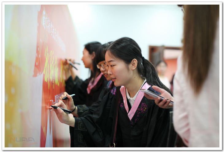 作为14届毕业生的“最后一堂课”,学院邀请南航校歌的词作者刘以恒教授为毕业生们细致地解读校歌《志在长空牧群星》的内涵,结合校史与中国文化对校歌的深入介绍让同学们受益匪浅。最后,刘教授还作诗《致毕业同学》,赠与学院2014届毕业班的同学们。 院长周德群教授的毕业寄语则像一个父亲给远走儿女的殷切祝福与悉心指点。以“入职六心”、“上班十二要”、“发展八能”和“四个善待,结合生活点滴故事,向毕业生一一细致嘱托,引起了家长们的共鸣,毕业生张畅的父亲说“周院长的生生嘱托也就是我们家长想要告诉儿女的,感谢学院四年来对他们的培养与包容,相信她们能够带着母校的期许,走出自己精彩的人生。”