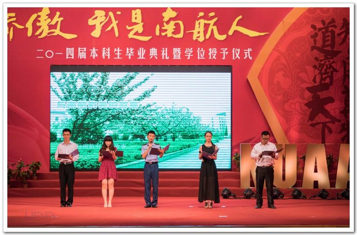 赵宁宣读了《南京航空航天大学 航空宇航学院关于2014年建议授予学士学位的决议》,由学院学位委员会的导师们逐个向毕业生授予学位证书,将晚会的气氛点燃到高潮。