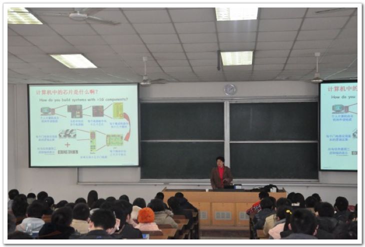 袁春风主要从事计算机组成原理和有关多媒体处理方面教学研究工作,现为国家精品课程“计算机组成原理”主持人。本学期由她牵头组织了4名青年教师围绕如何培养学生系统能力进行了重点研讨和集体备课,并给350名本科生开设了“计算机组成原理导论”讲座,为课程的讲授做足了铺垫。在《计算机组成原理》授课过程中,袁教授生动的语言、形象的比喻,深入浅出地讲解使得原定80人的教学安排常常出现120人的教室座无虚席。经过56学时的课程学习,学生的专业兴趣得到了激发,更有多人自主完成了支持56条MIPS指令的CPU,其教学效果是往年难以企及的。