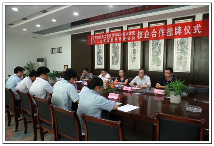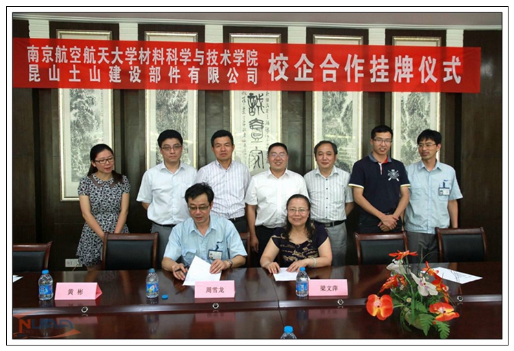 仪式上,双方分别介绍了主要情况,签订了《南京航空航天大学材料科学与技术学院与昆山土山建设部件有限公司产学研合作协议》,并共同为“南京航空航天大学材料科学与技术学院产学研合作基地”、“南京航空航天大学材料科学与技术学院实践教育基地”揭牌。会后,双方围绕关于建立长期稳定的学生校外实习基地、探索联合培养创新型、应用型人才的新模式、促进双方实现资源共享和更深层次的全方位合作等充分交换了意见。