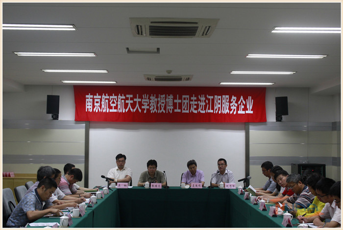 为积极响应江苏沿海大开发国家发展战略的号召,满足江苏沿海地区对高校人才、技术资源的现实需求,实现高校科技成果向经济生产和生活服务的及时转化,我校大力倡导“政用产学研”对接,加强高校科研和地方生产的项目合作。7月2日至4日,由机电学院副院长左敦稳教授带队,7名教授参加,16名博士、10名硕士研究生共同参与的硕博实践服务团走进江阴、靖江、如东、海安四地,开展服务地方企业的社会实践活动。 7月2日,江阴市科协联合市科技镇长团、科技局举办“科技专家企业行——南航硕博团校企对接”活动,硕博团与江阴市副市长、科技镇长团团长张继文,科协主席吴钢,科技局局长赵志军以及多名企业家进行了会谈。会上,科协主席吴钢介绍了科协的工作情况与系列成果,希望能与南航合作共赢,共同推动企业发展。左敦稳对南航机电学院的学科特色与技术成果进行了详细介绍,硕博团的专家教授同与会企业在技术成果转化项目及人才需求方面展开了深度交流。最后,副市长张继文肯定了校企合作模式,希望企业与院校的交流活动要建立长效机制、深入持久开展,促进企业与院校在科技研发、难题攻关和人才培养等方面的合作。会后,硕博团参观了江阴市恒润重工股份公司、启良停车设备有限公司、科安传动机械有限公司、柳工无锡路面机械有限公司等多家企业的生产一线,并与启良停车设备的自动选调停车系统的控制技术改进、柳工双涡轮变矩器变速箱系统的改良等难题进行现场交流,初步达成合作意向。