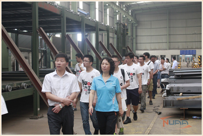 3日,硕博团来到靖江市三江电器集团的电机生产车间及工程技术研究中心参观,并进入到检测中心的噪声测试实验室进行切身体验。生产车间新引进一条电机装配全自动生产线和一条自动双头绕线机生产线,每8秒就能装配一个成品电机,该技术在国内遥遥领先,不仅节约了成本,还顺应了技术进步的需求。最后,左敦稳教授代表学院与企业就自主创新、企业升级的技术支撑,建立产学研相结合的科技创新体系,达成了技术成果转化项目合作意向。 4日上午,硕博团走进如东县润弘机械科技有限公司、合兴铁链有限责任公司、众阳机械有限公司等企业,并参观了江苏省健身器材之乡新店镇的健身器材展示中心。下午,“海安经济技术开发区-南京航空航天大学”产学研对接活动在海安县软件科技园举行,硕博团与县科技局党组书记赵爱玲、经济开发区管委会经济发展局局长谢国华等进行了座谈,校地双方分别进行了宣讲介绍。会后,硕博团在科技工作组组长季小云的陪同下参观了交睿机器人科技有限公司、通润汽车零部件有限公司、西蒙电气(中国)有限公司、江苏联发纺织股份有限公司等企业。