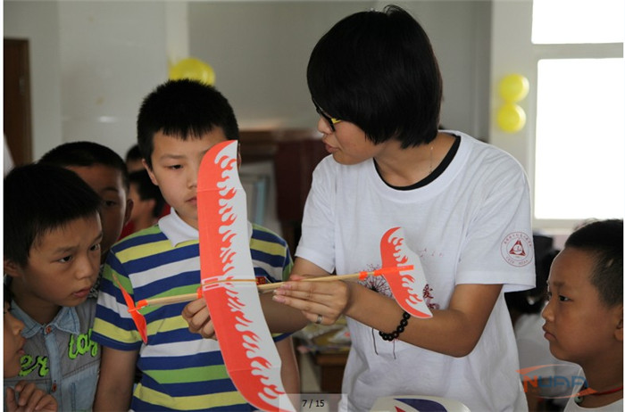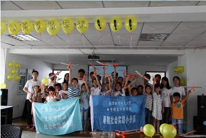 7月8日下午,电子信息工程学院“关爱城市的蒲公英”团队在清凉山社区举办的“南航学子筑梦农民工子弟”活动。出席活动的嘉宾有:南航电子信息工程学院党委副书记季海群、清凉山社区袁书记以及南京日报、新华日报、江苏人民广播电台等诸多媒体记者,此外活动也得到金陵晚报小记者团的关注和参与。 季海群为此次活动致开幕辞,呼吁更多的大学生关注社会中这群同样可爱的孩子。在队长向各位来宾介绍“关爱城市的蒲公英”团队的发展史以及每一年的成长后,清凉山社区袁书记向南京航空航天大学以及这支社会实践团队表达了感谢。本次特别活动围绕“梦想”这一时下热门话题进行,先由队长提问小朋友们。在层层引导下,每个孩子都说出了自己不同的梦想并表达出会为了梦想做出怎样的努力。接下来由团队成员带领孩子们制作航模,这群孩子在小记者团的影响下变得更加活剥开朗,在经历了约半个小时的制作和调试后,每个孩子手中都多了一个崭新的航模。最后由队员带领孩子们在航模上写下自己的梦想将其放飞,并和孩子们约定一起为自己的梦想继续努力。