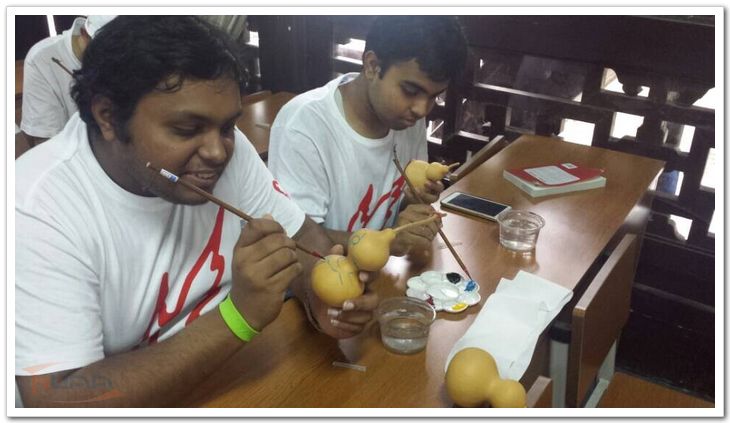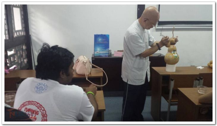 彩绘葫芦是江苏地区传统手工艺之一,小小一枚葫芦上可以绘出“八仙过海”、“龙马图”、“公祭伏羲”等等精美的图画,有的甚至可以讲述一个完整的故事。此次,我校“翼展青奥”团队的同学们为了迎接青奥,帮助外来游客了解江苏民俗文化,特地带着三位外国友人来到南京市民俗博物馆学习制作南京传统手工艺——彩绘葫芦。 "金陵葫芦张"张苗大师亲自带领团队20名中外大学生进行彩绘葫芦的绘制活动。游泳、跑步、体操……各项青奥赛事将由吉祥物砳砳展示并绘制在葫芦上。活动现场,团队成员们一共要制作20个作品,并在活动完成后将这一组彩绘葫芦赠送给青奥组委会,希望让更多的人关注青奥,了解江苏民民俗文化。 活动现场,同学们都非常兴奋。“我们都是第一次接触这个彩绘葫芦,以前只是觉得这种葫芦看起来很精致,没想到自己亲手画起来这么难。”团队成员之一张颖跟记者介绍道,“我们团队成员基本上都没有绘画基础,所以大家都很担心把画画丑了,最终效果不好。” 来自印度的卢山一直对中国文化非常感兴趣,在张苗老师跟同学们讲授基本技法的时候他听得格外认真,最终呈现的效果也是相当不错。“我很喜欢中国,喜欢中国文化。我非常感谢能够来中国学习,见识到这么美丽的艺术!” 此前,“翼展青奥”团队已经学习过陶艺、缂丝、剪纸三项民俗手艺,接下来他们还将学习制作传统纸鸢、制作传统花灯等。“江苏的民俗文化种类繁多、博大精深,更遑论是全中国的民俗文化艺术。此时我们能力有限,能做的仅此而已,但是我们非常希望我们所做的一切能在发扬民俗文化的道路上发挥一点微末的作用!”团队负责人张烨琳同学告诉记者。 ![]() ![]() ![]()