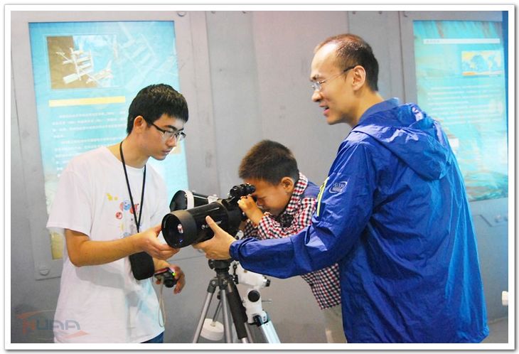 25日上午,位于鼓楼区石头城118号的江苏科技馆内人头攒动,不大不小的展厅内时常能听到小朋友稚嫩的笑声。科技智慧馆内,一群统一着装、默默忙碌着的“大朋友”是材料科学与技术学院拾梦星空“圆梦”团队。 星空照片,日食观测卡,飞机模型,天文望远镜,一切就位之后,投影仪中映射出的一张张星座照片正式拉开了本次南航暑期社会实践天文知识宣讲活动的序幕。活动伊始,来自能力与动力学院的杨昊便对小朋友们最感兴趣的天文望远镜进行了详细的讲解。在现场示范了天文望远镜的组装过程之后,杨昊也向在场的学生家长介绍道,在考量望远镜时要依据多种因素,如口径、焦距,以及焦比,与此同时,影响望远镜优劣的指标也不容忽视,如色散,相差等 在游戏环节。“圆梦”团队以星空为依托,设计了四款名为“九宫格”、“连连看”、“快速记忆”、“心有灵犀”的小游戏。在“快速记忆”游戏中,“圆梦”团队在20个天文词汇中随机挑选出8个与天文相关的知识,如常数、年份、史实,参赛者须在观看记忆2分钟后的一分钟内将信息复述出来,准确无误者将会得到一套精美的星空明信片。学生家长杨先生表示,这样的小游戏不仅能够增加孩子们的知识,还能够提高孩子们的速记能力。 轻松愉悦的游戏过后,来自航空宇航学院的杨舒婷以中国传统小故事“牛郎织女”为例,细致入微地对星座进行了讲解并随机提问,在场的小朋友积极参与,踊跃回答。 杨昊就航天器进行了系统的介绍。他指出,航天器是指在地球大气层以外的宇宙空间基本上按照天体力学的规律运行的各类飞行器,它们由不同功能的若干分系统组成,一般分为专用系统和保障系统两类。专用系统用于直接执行特定的航天任务,而保障系统则用于保障专用系统正常工作。杨昊详细地总结了以中国为主的各国探索宇宙的历史,并对未来的太空探索任务进行了展望与分析。 与此同时,杨昊更是指出探索宇宙并非有百利而无一害,实质上,成本过高、造成太空污染仍是需要关注的问题,而地球环境日益遭到破坏则极有可能是各国努力探索宇宙的根本之因。因此,他也教导在场的小朋友从小就要注重保护环境,从点滴做起,而家长们则更是要起到标榜作用,用一双纯净的眼睛去探索未知的秘密。 本次活动在8位“圆梦”团队成员的努力下,共计百余人参与并观看了宣讲活动,历时一小时,活动结束后,不少家长表示本次活动内容轻松有趣,宣讲语言简单易懂,很受小朋友的欢迎,他们也希望在校大学生能够多多举办类似的活动。