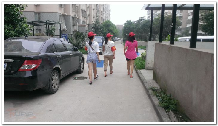 7月26日至27日,团队一行走访了南京市江宁区岱山社区和雨花台区西善花苑社区。队员们带上居民委员会的帽子和徽章,进行入户调查,调查的主要目的是要了解保障房中居民的大致生活状况。然而这个过程却远比想象的要困难许多。很多居民并未搞清楚队员们的来意,有些不愿多听解释就一味拒绝调查。有的居民听了解释,然而仍持将信将疑的态度,即使是回答问题时也带着几分犹豫。此外,一部分住户外出离家的情况,也给调查增添了难度。