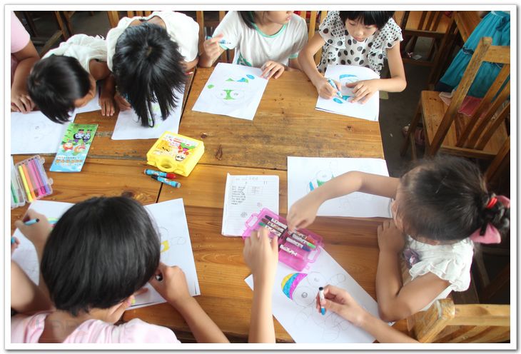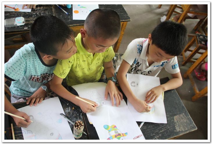 江西上饶,理学学子通过带领留守儿童手绘砳砳,为砳砳着色,与砳砳合影等,和山区孩子共同迎接青奥。