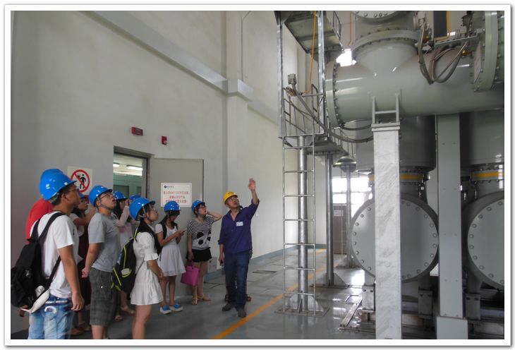 火力发电厂生产主要为煤,水,蒸汽的循环。“火力发电的成本中,燃煤费占了75%,所以选择优质煤是提高效率的最重要的途径。”工程师重点讲解了各个过程是如何提高发电效率的,并介绍了各种提高废物利用率的方式,告诉成员们,如今火力发电也在逐步向高效、清洁转变。