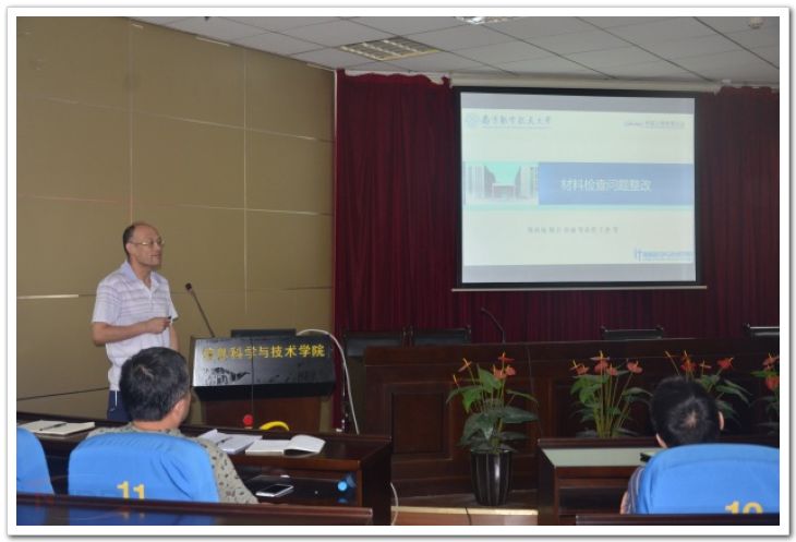 8月25日,计算机科学与技术学院召开了工程教育专业认证计算机科学与技术专业自评报告培训会,学院全体教职工参加了会议。会议由陈兵副院长主持。 根据学院总体部署,7月至8月是工程教育专业认证的攻坚阶段。暑假伊始,学院即召开全院大会进行认证任务安排,随后组织全院教师利用暑假开始的两周时间完成了各项材料的梳理,收集整理资料容量超过2GB。学院在7月底邀请专家对自评报告进行了内审。本次8月份的培训会主要任务是对所有老师进行自评报告培训、针对前期材料检查出的问题进行整改以及布置暑假第二阶段的认证工作。