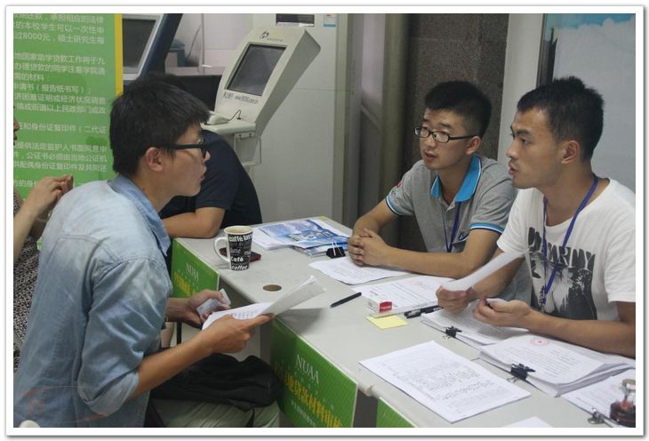 为了向广大同学宣传南航的勤工助学工作,引导有需要的同学参与勤工助学,尽快融入南航这个大家庭中,学生助理学校于9月1日至3日在江宁校区注册中心开设了勤工助学咨询点,为新生解答关于勤工助学方面的问题。
