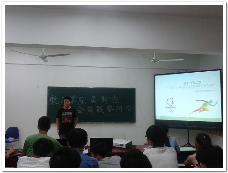 9月7日晚,航天学院在将军路校区举行了2014年暑期社会实践院级答辩。2012、2013级共计19支优秀社会实践团队积极参加了此次答辩。航天学院辅导员刘洁、院学生会主席付浩和团委副书记周芳到场担任了答辩活动的评委。 答辩开始,每个团队分别进行3分钟的自我陈述,向大家展示暑假中团队的成果。每个团队答辩人通过精心制作的ppt、照片集或视频的形式展示了自己团队暑期辛苦得来的实践成果,也说出了在整个实践过程中的心得体会。Story teller 团队感人温馨的视频、与青奥共成长团队对青奥宣传的努力、潇湘行民族情团队带来的不一样的民族风、fixer团队精湛的技术和影响力、筑梦•大学团队对高三学生的激励等都给在场的所有人留下了深刻印象。接着评委们针对每个团队都进行了譬如针对团队活动细节、成员分工等多方面的细致提问,也切实地对团队给出了宝贵建议,每个团队也将在答辩结束后根据建议进行最后的改进。最后整个答辩在主持人的总结中圆满结束。 此次答辩会让航天学院每个社会实践团队有了一个展示实践成果和相互交流的平台,让大家能够看到他们在暑假期间的努力与成长,收获了别样的“知行”体验与感悟。 ![]() |