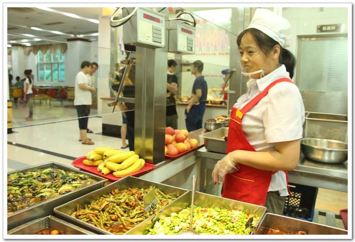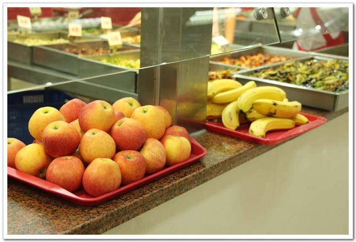 午餐时分,明故宫校区三食堂的用餐者摩肩接踵,教师窗口早已整整齐齐的摆满了清洗干净的水果,等待老师们免费取用。风味轩餐厅则为老师们提供特价菜——2元一份的辣子鸡。将军路校区三食堂和东清食堂也同时推出酸奶和饮料,赠与前来用餐的老师们。