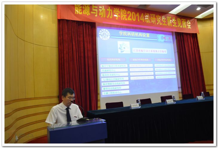 院长陈伟介绍了学院的基本概况,对2014研究生提出了几点建议:做学问,首先要学会做人;研究生更注重能力的培养;做研究一定要有创新;安心学习,潜心研究以优异的成绩完成学业。另外,他还为大家列举了一些南航的杰出校友如何将自己的理想、抱负、使命和责任凝聚到祖国的航空航天事业当中,比如学成报国,兢兢业业的沈阳航空发动机设计研究所总设计师严成忠;投身航空航天,奉献青春的中航工业集团公司总经理林左鸣等等。他说,这些校友是南航的骄傲、是祖国的荣耀,更是在座研究生学习的榜样。
