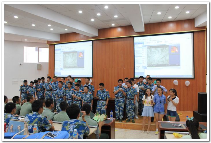 9月8日,在中秋佳节之际,机电学院2014级新生“机电飞歌,月圆中秋” 联谊会在江宁校区2号教学楼成功举行。军训团五连全体教官、2014级新生辅导员及全体新生参与了此次联谊会。