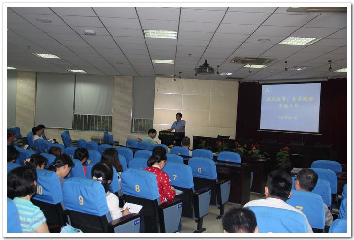 9月12日下午,电子信息工程学院召开新学期全院教职工大会,传达学校十五届党委十二次全委扩大会议精神,总结上半年的工作,部署下半年工作。会议由学院党委书记冯绍红主持,全体教职工出席了此次大会。 会上,常务副院长周建江教授对照目标管理指标考核体系对上半年工作进行总结,并传达了校党委第十二次全委(扩大)会议精神,重点就深化校内综合改革的必要性和紧迫性以及学校即将开展的改革工作部署向教职工进行了传达。他指出:上半年,学院教学、科研、人才培养以及党建工作取得了可喜的成绩,这些成绩的取得为学院顺利完成全年目标管理指标奠定了良好的基础。下半年,学院要以深化校内综合改革为契机,以一提三优(二期)工程为抓手,群策群力,全力推进各项工作,确保全年建设任务的顺利完成。