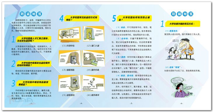 “2月24日,我校学生李某在食堂排队打饭时上衣口袋内白色iphone5被盗;3月,我校学生张某接到电话,对方以淘宝退款为由,骗得张某银行卡网银账号和密码,被盗刷4000余元;4月18日下午,我校学生陈某某在篮球场打球将三星S4手机放在篮球架下,打完球发现手机丢失……”这是南京航空航天大学大学生安全互助中心为刚开始独立生活的2014级新生们整理的校园治安案例中的部分内容,希望藉此提醒新生提高自我保护意识,营造良好校园环境。