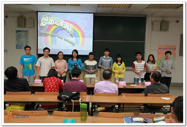 9月20日,电子信息工程学院科协承办的首届南航创意APP大赛终审答辩在将军路校区举行。出席此次答辩的评委有电子信息工程学院副院长张弓教授,学院老师洪峰、夏永君、张方正,学院团委书记张晓燕,学院辅导员周贞琪,以及校科协副主席胡述伟、学生评委王玮皓。比赛现场气氛热烈,掌声不断。