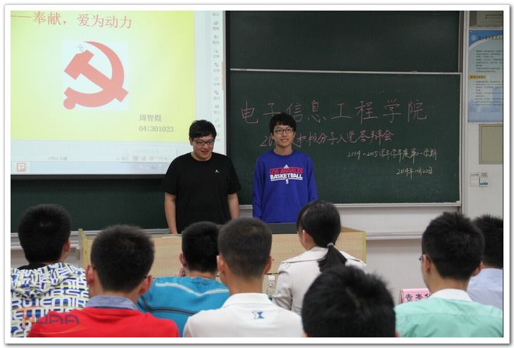 10月20日晚,电子信息工程学院2013级入党积极分子党员发展答辩会在6103教室举办。 本次答辩会的评委是教务处袁李华老师、13级辅导员周贞琪,3名学生正式党员,年级各班同学组成30人大众评审团。在主持人的一段开场白之后,答辩会正式开始。参与答辩的同学依次上台陈述个人对于党组织和党员的认识,每一位积极分子从多个方面陈述自己的近一年各方面的表现。积极分子们个人展示内容丰富,层次清晰,言辞精炼,妙语连珠,针对评审老师和学生代表的提问,精彩的回答不时博得在场老师同学们的阵阵喝彩。答辩现场,学生代表认真聆听,投票积极,气氛活跃。 本次积极分子入党答辩会不仅体现了大学生的入党积极性,同时展现了新时代大学生开朗阳光,力求上进的风采。积极分子们的答辩表现为众多学生树立了榜样,对于端正学生入党动机、形成良好风气、学院党团活动的开展和同学个人素养的提升都具有十分重要的意义。 ![]() ![]() ![]() ![]() |