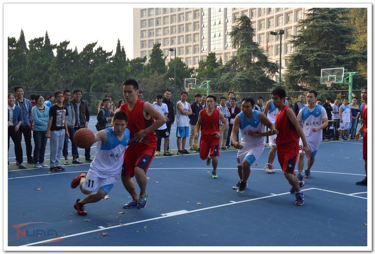 在大家的欢呼声中,期待已久的正赛终于拉开帷幕。第一天比赛由机电学院对航天学院,能源与动力学院对自动化学院。双方抢球、断球、防守、进攻,激烈争夺、完美配合,赢得了场下观众们的阵阵喝彩声。两场比赛的过程都非常激烈,双方互相咬住对手,一方稍有疏忽就被对方抓住机会上篮得分。中场休息的时候,各学院的女生球员上场,轮流上篮得分,展现出巾帼不让须眉的一面。在下半场的比赛中,二院的队伍和十五院的队伍保持优势,并努力奋战,终于取得最后的胜利。最终航天学院55比47力克机电学院,能源与动力学院57比46战胜自动化学院。