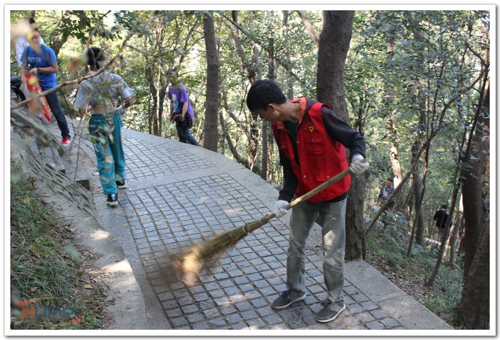 2014年10月23日,民航学院2013级空中交通管理与签派专业30余名学生在其运筹学老师李海峰的组织下,来到南京紫金山山顶公园,进行“绿色紫金山”环保公益活动。 当天清晨,30多位同学随李海峰来到紫金山山顶集合。在工作人员的配合下,同学们换好志愿者服装,拿出扫把,沿着登山阶梯热火朝天地清扫起来。整个过程中,同学们相互配合,艰辛却也快乐。虽然期间也曾碰到过不理解的市民,但丝毫没有消弱同学们的积极性。同学们表示“奉献的路上,总会遭到误解和质疑,但能唯有坚持自己,才能有所收获。”