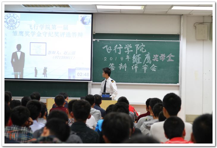 10月21日,民航/飞行学院在将军路校区举行了2014年飞行学员雏鹰奖学金答辩评审会。本次答辩会由民航/飞行学院党委副书记宋凯老师、04届杰出校友——上海航空公司机长孙文吉先生以及学院辅导员老师担任评委,并对答辩人的个人展示、精神面貌、心理素质等方面进行综合的评定与考核。14级的飞行学员们也观摩了此次答辩会。