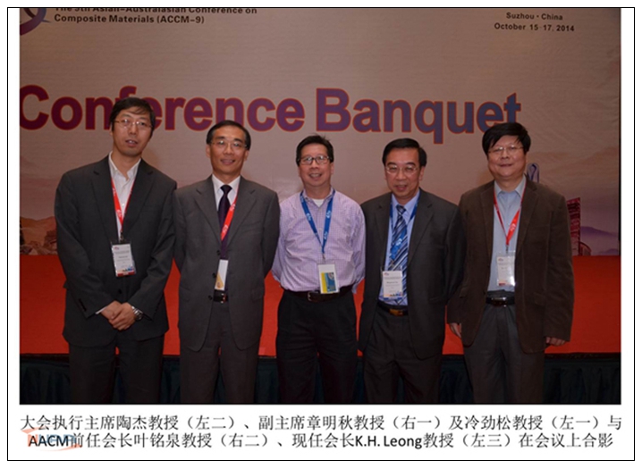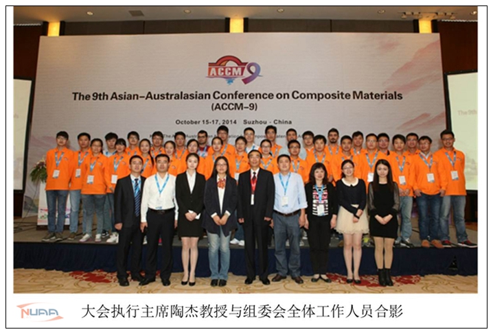 2014年10月15日-17日,由亚澳复合材料学会(The Asian-Australasian Association for Composite Materials,AACM)主办,中国复合材料学会、南京航空航天大学、江苏省复合材料学会、南京工业大学和江苏先进无机功能复合材料协同创新中心联合承办的第九届亚澳复合材料会议(The 9th Asian-Australasian Conference on Composite Materials ,ACCM-9)在苏州召开。