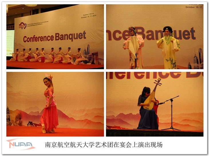 为了更好的突出本次国际会议的学术氛围,打造纯学术交流平台,更好的发挥学生的主观能动性并响应绿色办会的精神,本次会议的所有筹备及会场服务工作、乃至表演及客串主持工作都由学生完成。本次会议长达两年的筹备工作,包括会场的组织及服务工作均由陶杰教授课题组的硕、博士研究生完成,从网站的制作、支付系统构建、会议材料的设计与丰富、会务报到系统的设计与安排、会场布置等,他们在组委会老师的指导下出色完成了各项任务,顺利完成了周密的会议组织、服务工作。值得一提的是,本届会议的两位主持人和宴会上进行文艺演出的表演者也均是来自南京航空航天大学的在校学生。