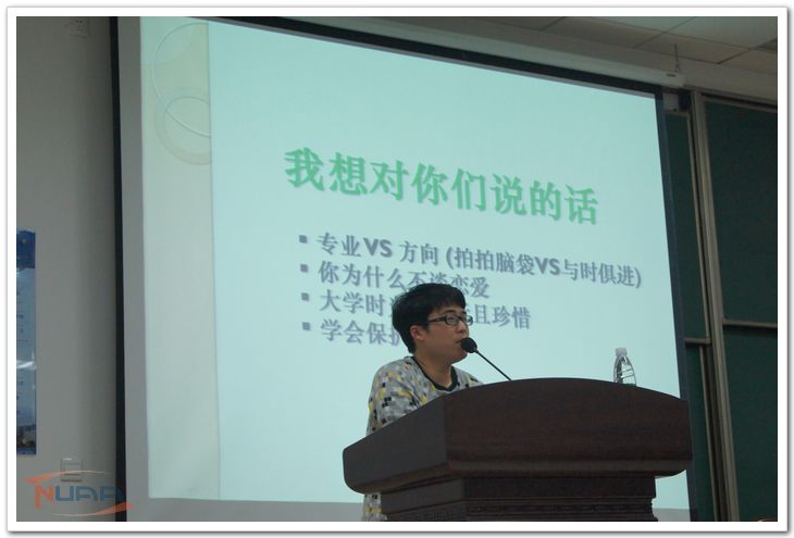 10月26日晚,自动化学院2014级第一次素质能力导航课“青年的时代,时代的青年”在D1213开课。自动化学院所有2014级新生和辅导员参加了此次导航课。本次导航课邀请到嘤鸣读书会创始人赵健、自动化学院09届毕业生王寅带同学们探索读书与留学的青年人时代。 主持人简短介绍后,赵健在同学们热烈的掌声中走上讲台。自中学时代起,他就热心于公益活动与交流实践,“爱德面包坊”“嘤鸣读书会”“思奔”“读剧会”,赵健通过分享自身经历直面青春命题。提问环节中,赵健与同学们亲密互动,阐释了自己“授人以鱼不如授人以渔”的公益目的和对家长期望与自我选择等方面的看法,妙语连珠,博得阵阵掌声,解开了同学们对于青春与大学的迷茫与纠结,使与会学子产生深深共鸣。最后,他勉励同学们要活在“没有围墙的大学”,创造持续的美好生活。孤独的读书人赵健引领学子领悟“身体与灵魂,总得有一个在路上”。 接下来,王寅的互动演讲调动了全场气氛。演讲从“走走停停,从南航到VT”“我想对你们说的话”“留学生活”三个版块以边演讲边接受提问的方式让同学们深切体会到他的求学波折与人生哲学。他提醒同学们要摆脱考试、求学的惯性,敢于尝试、注意额外收获,他更强调,“找方向比做什么更重要”。 导航课过程中,全场学生认真聆听,他们在国际视野、学习能力、表达能力等素质方面得到了锻炼与提升。一场交流会过后,与会学子已渐渐找到了自己的青春目标。 ![]() ![]() ![]() ![]() |