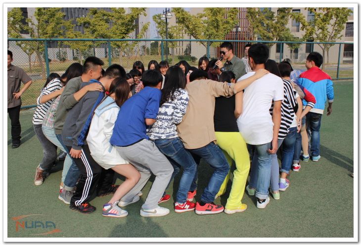 良好的团队氛围和默契是一个学生干部团队必不可少的要素,为了锻炼新成员们的合作意识,加强团学新成员与学长学姐的感情交流,2014年10月19日,在人文学院团委书记尹春苹老师的领导下,人文团学在学校东操场上进行了一次素质拓展活动。