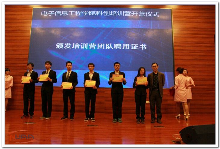 10月30日下午2时30分,电子信息工程学院(自组织)科创培训营开营仪式在将军路校区主楼报告厅正式举行。学院党委书记冯绍红、校团委副书记徐川、电工电子实验教学中心主任葛玉蓝、学生处事务科科长张跃、党委副书记季海群、团队指导老师洪峰、“群星”创新奖获得者刘振宇出席活动。本次仪式由学院科协主席闫旭主持。 科创培训营,是电子信息工程学院为提高学生的创新意识和学习能力,在原“科创培训班”基础上创建的自组织。其面向对象由全院同学扩大为全校,培训内容较先前也更丰富,组织体系更规范完善。目前,培训营由讲师团队提供课程方案、发展计划、授课指导,由运行团队负责经费、场地维护和组织管理。营员在接受培训之余,亦进行组织日常事务讨论及互相交流。它的成立,是我校推动教学改革、全面提高学生综合素质能力的重要举措之一。 季海群在动员讲话中详细介绍了学院的创新创业教育体系,并特别指出,要面向全体学生,着重通过普惠式的系列培训来选拔科创团队,培养新一批优秀人才,不断为学校的创新教育输送新鲜血液。学院科协副主席王鑫在仪式上回顾了科创培训营的发展历程,对新一届学员提出了更高的技术要求,校科技中心嵌入式工作室副主任曾福代表学生导师团队介绍了培训计划;指导老师洪峰分享了学习心得和竞赛经验,为入门学习提出了宝贵建议。 接着冯绍红和葛玉兰为培训营揭牌,徐川向培训营导师团颁发聘书,张跃向培训营团队办法聘书。最后,“群星”奖得主刘振宇强调了“勤于学习,勇于创新”的精神与树立团队意识的重要性,鼓励同学燃起兴趣的火苗,全身心投入到实践研讨中去。仪式在热烈的气氛中结束。 科创活动中理性的学术环境、便捷的平台、过硬的制度保障、良好的实施等要素对于新时期的工科高校学生有着举足轻重的作用。2011年以来,从“班”到“营”,电子信息工程学院科创培训自组织有了质的飞跃。展望未来,科创培训营将以它强大的导师力量和良好的学习环境,为营员及广大同学提供更多贴近科技前沿、自主动手实践的机会,使同学们能够丰满创新的羽翼,自由翱翔于工程实践的天空。 ![]() ![]() ![]() ![]() ![]()