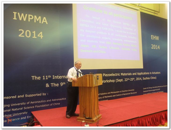 由南京航空航天大学大学和苏州大学共同主办的第十一届压电材料及其在作动器上的应用学术年会暨第九届能量收集学术年会(The 11th International Workshop on Piezoelectric Materials and Applications in Actuators & The 9th Energy Harversting Workshop,IWPMA&EHW2014)于9月22-25日在江苏省苏州市召开。大会主席由南京航空航天大学赵淳生院士担任,副主席分别是苏州大学机械学院院长孙立宁教授和南京航空航天大学机械结构力学及控制国家重点实验室杨颖教授担任。 会议得到了世界各国超声电机、压电作动器、压电材料以及能量收集领域的专家、学者及相关企业的支持,参会代表来自中国、美国、德国、英国、法国、日本、韩国、印度、土耳其、立陶宛等10余个国家。共有美国Massachusetts Institute of Technology的SangGook Kim教授等的11位国际相关领域专家做大会报告,12位专家做邀请报告。与会代表共167人,参展企业10家,是近年来超声电机及压电能量收集领域规模最大的国际学术活动之一。会议期间各国学者进行了广泛的学术交流。会议学术气氛浓厚,讨论热烈。 为表彰赵淳生院士在压电作动器领域的杰出成就和重要贡献以及他对IWPMA和EHW的一贯的支持,IWPMA组委会向赵淳生院士颁发了超声电机终身成就奖,EHW组委会向赵淳生院士颁发了第四届CEHMS发明奖(Fourth CEHMS Inventor Award 2014)。 会议期间还举办了压电材料及作动器应用相关仪器设备展览,吸引了众多参会代表。9月24日下午,部分专家学者及与会代表分批参观了苏州博实机器人技术有限公司。 9月25日中午,IWPMA会议学术委员会主席Jörg Wallaschek教授宣布第十一届压电材料及其在作动器上的应用学术年会暨第九届能量收集学术年会圆满成功。立陶宛的Piotr Vasiljev教授宣布2015年第12届IWPMA会议将在立陶宛首都维尔纽斯举办。 ![]() ![]() ![]() ![]() ![]() ![]() |