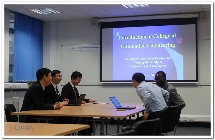 11月4日,我校自动化学院院长姜斌教授一行,在国家自然科学基金海外学者合作研究基金的资助下,访问了英国帝国理工交通研究中心,一同访问的还有南航自动化学院刘建业教授和曾庆化副教授。帝国理工大学交通研究中心主任、英国皇家工程院院士Washington Yotto Ochieng教授会见了代表团。 Ochieng教授首先对南航代表团一行的来访表示欢迎,并向来访人员详细介绍了帝国理工的背景和办学理念,并围绕学校的管理体制、发展战略及进展、合作交流等方面进行了详细的阐述。会议期间,帝国理工冯绍军老师带领南航访问团参观了交通研究中心。