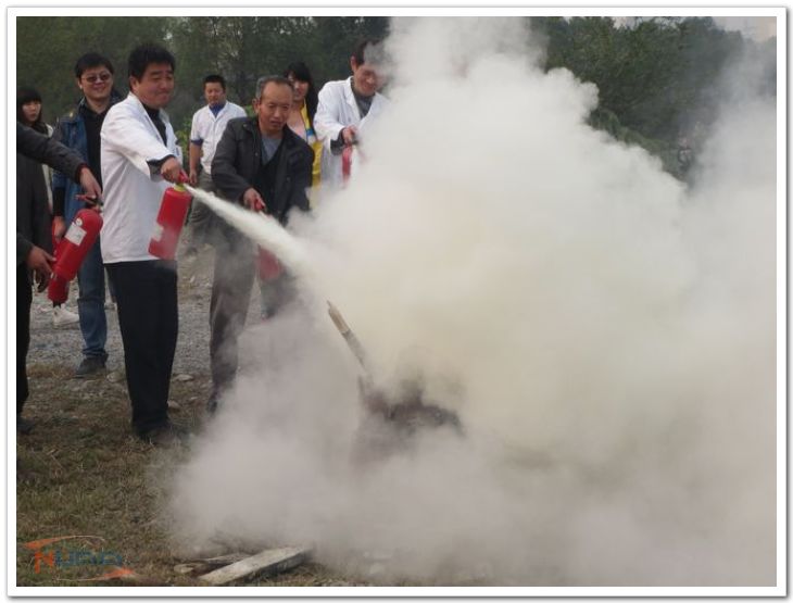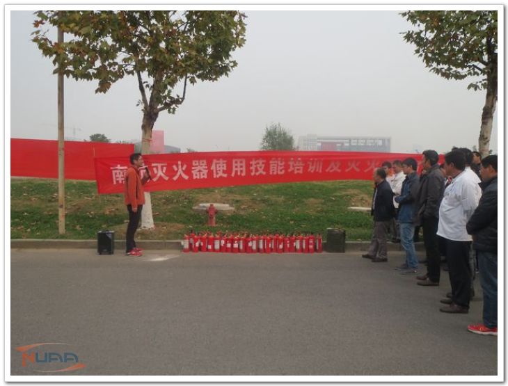 随后进行了一场消防演练。随着油桶的火势急剧,参加演练的人员迅速到达事发区域,按照已经学习并掌握的灭火器的使用方法和要领,“一提、二拔、三瞄、四压”,赶到现场后迅速把明火扑灭,随后又对暗火进行了仔细清理,根除火灾隐患。