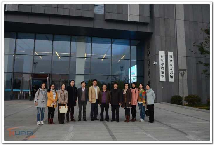 张建宁副局长对我校档案馆的到访表示热烈欢迎,并安排相应的处(室)介绍了管理经验、技术问题及答疑解惑。张建宁介绍说,南京市档案馆属于市政府领导下的直属机构事业局,事业编制,履行着档案行政管理职能。其馆藏资源丰富,馆藏量达到107万卷(件)。河西新馆馆藏面积由原先9000平方米到如今大楼上下十一层近41000平方米的使用面积,库房配备了智能密集架、温湿调控系统等现代设备,软硬件条件得到了大大改善。在档案信息化建设方面,纳入到南京市智慧城市整体规划,目前已经建成四网融合的档案信息化体系。在档案服务上,查档方式也有了很大的改进,由原先相对封闭的状态到如今市民携带身份证,就可以很便利地在档案馆内查询所需档案,彻底告别了以前长达55年的市政府大院服务模式。由于新馆交通便利,前来新馆查档的市民明显增多。随后,市档案局各部门分管处长详细介绍了各自的工作内容,包括科技处、技术处还有管理处。其中,在信息化和数字化工作的开展方面,南京市档案馆起步非常的早,取得了飞速的发展,同时做出了很多亮点工作。尤其是在民生档案方面,整合民生档案资源,建立了民生档案专题数据库,开通了民生档案和开放档案信息共享平台,积极探索“就地查档、跨馆出证”的远程协同服务新方式。