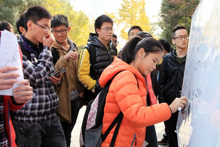 招新工作涉及到中心每一个部门的长远发展,各部门成员们都非常重视,积极主动,虚心纳才。为前来询问的学生作详细、充分的推荐,以发展壮大中心教员的力量。此外,“学霸等你来PK”擂台赛,吸引了大批同学驻足参与,有的同学们在高数、大物题面前抓耳挠腮、探索尝试,有的在留言簿上写下了关于数学学习的疑惑和心得,有的积极填写加入中心的教员/学员申请表。今年,荣获校长特别嘉奖的“物理大神”董千里同学也来到现场,为同学们热情的答疑解惑,分享学习的好方法。