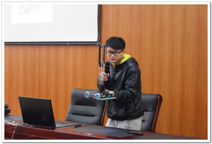 讲座上,科创精英都讲述了自己的个人成长及参赛经历,并结合自己的作品展示了科创的艰辛与魅力。江宽首先介绍了参加科创竞赛的流程,从选题、作品设计到现场竞技,他们遇到了资金不足,场地限制,时间冲突等诸多问题,但最终都一一克服,并从众多选手中脱颖而出。他还现场演示了多功能机器人的工作过程。张榕江表示科创灵感源于生活,服务于生活。他不仅详细介绍了自己的参赛作品,他还借助节能减排大赛中的其他作品告诉我们,“科创中,选题很关键”。 孟岭超和吴大伟现场展示了他们的科创作品,并体现出极高的专业素养。演讲中,他们都提到“搞科创,学好专业知识很重要”。他们还鼓励同学们要勇于实践,积极参与到科技创新中去,为大学生活添上一抹靓丽的色彩。