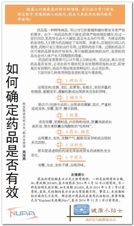 药品和人们的生活息息相关,此文包含着我们对南航师生的关心和爱护。