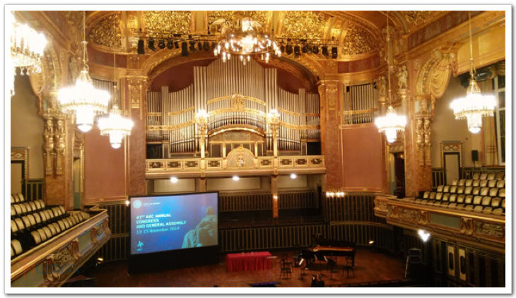 11月13日到15日,我校艺术学院院长张捷,副院长杨莉莉及副教授凌饴赴匈牙利参加了“第41届欧洲音乐协会(AEC)年会”。布达佩斯是著名音乐家李斯特的故乡,而此次会议正是在匈牙利李斯特音乐学院举办。在这片古老的土地上,能够感受到音乐作为这个民族的基因和底色继续在现代文明中发挥着超越于音乐本身的作用和力量。正如此次大会的主题:“传统、多元化与创新:欧洲高等音乐教育的今天与未来”。欧洲是西方音乐的发源地,虽然会议主题说的是欧洲音乐教育,但是参会人员确实却有来自于五大洲近百所音乐学院三百多名学院院长和教授。 这是我校艺术学院第一次参加这一国际音乐界的盛会,希望通过此次参会与交流能够与更多学院建立联系,推动未来的国际化教育和学术交流。此次大会由AEC现任执行主席Pascale de Groote女士主持,耶胡迪·梅纽因国际基金会主席、欧洲议会前主席Enrique Baron Crespo及Harald Jorgensen教授分别进行主题演讲。在各平行分论坛上,我院分别与参会代表就“音乐教育的评估与标准“、”高等音乐教育领域的学术研究”、“质量提升、鉴定与对标”、“终身学习:音乐教育的创新发展”、“移动性:认知、监督与联合学位培养”等主题进行交流。会议期间,李斯特音乐学院还为参会学院和人员提供了许多交流的机会和平台,我校艺术学院代表团在参会期间还观看了三场由李斯特音乐学院师生共同表演的音乐会、参观了李斯特音乐学院的教学设施与硬件条件建设,并与李斯特音乐学院、波兰克拉科夫音乐学院、白俄罗斯国立音乐学院、荷兰海牙皇家音乐学院进行了良好的沟通和交流,未来希望能够在师生学术交流和国际化教学等方面开展更多的合作,以进一步推进艺术学院的国际化教育的规模和水平。