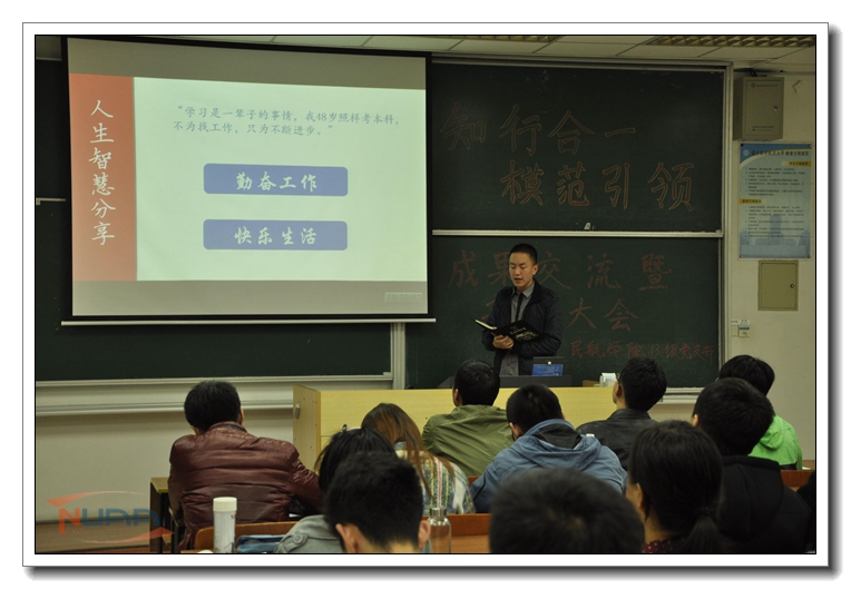 11月22日晚上,民航学院2013级党支部在将军路校区教室举行了“知行合一,模范引领”寻访道德模范成果交流暨表彰大会。 “知行合一,模范引领”活动自10月20日开始,至今已进行一月,旨在引导党支部成员对南京市道德模范进行拜访学习。 在党支部书记路红飞致开幕词后,各组开始了自己学习成果的分享。从两会中向习总书记报告工作的预防局局长林志梅,到面对714万巨款却坚持诚信的售票员蒋秋月,道德模范覆盖领域广泛,各有侧重。在大会中,同学们生动的展示了自己的学习成果。随后,小组成员讲述了自己的学习心得。道德模范们勇于担当,爱岗敬业,无私奉献,诚信为本的优秀品质给予了同学们极大的心灵震撼和精神上的洗涤,让同学们接触到了时代的脉搏,感受到了社会的温暖。 随后,党支部对活动中表现突出的同学进行表彰。在最后的总结中,辅导员康冲充分的肯定了此次活动带给同学们作用,他就此次活动提出了 “在当今社会,大学生不仅要有批判与质疑,但也要有相信,相信生活中的真善美,相信爱,相信人性的光辉!”此次学习活动带来的这种心灵上引导,将会在很久的以后一直对同学们产生很深的影响。