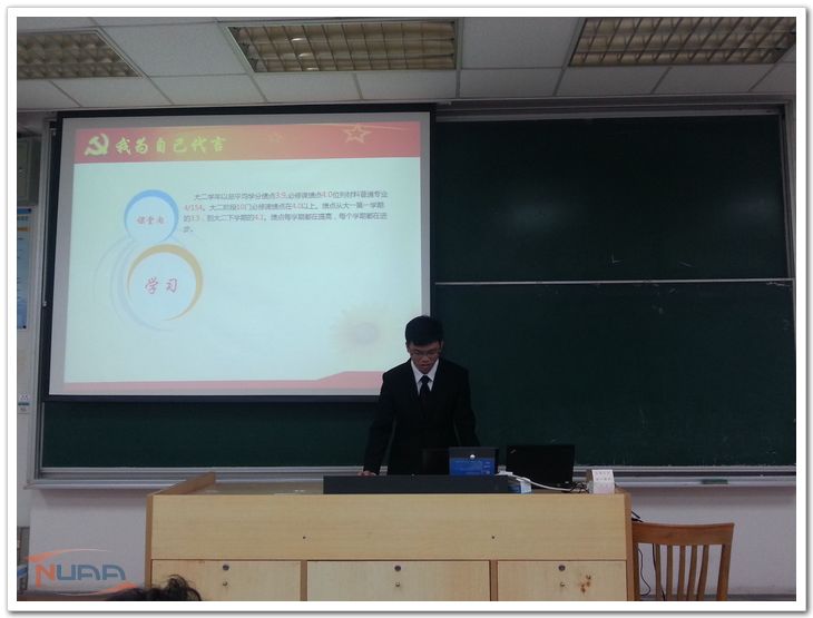 11月23日,材料学院本科生0612党支部入党积极分子发展考核答辩会在将军路校区举行。材料科学与技术学院12级辅导员关天茹老师、本科生0612党支部的全体党员以及13级部分党员同志参与了本次发展考核答辩会。 本次答辩以“视界 世界”为主题,分为“我为自己代言”、“我与党的不解情缘”和“我心中的合格党员”三个部分。在“我为自己代言”环节,答辩同学分享了自己进入南航以来的学习生活,所得所感。在“我与党的不解情缘”环节,每一个答辩同学交流了自己对于党的理解和认识,以及自己的思想动态,续润州同学更是分享了自己一家三代人作为党员的光荣事迹。在“我心中的合格党员”环节,每位同学展示了自己设计的合格党员推选方案,从考核方式、考核内容到考核流程,内容细致,方案合理而形式创新,为党支部未来的党员发展方案提供了许多优秀的建议与参考。随后,由本科生0612党支部的全体党员组成的评委与答辩同学进行了交流,就其设计的考核方案提出了自己的看法与意见。
