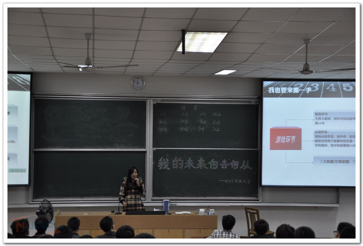11月20日晚,民航学院2013级“我的未来何去何从”就业方向指导与职业规划年级大会在将军路校区教室召开,民航学院2013级辅导员康冲、2011级优秀学生代表和2013级所有学生一起开启了这场就业方向成长之旅。 大会共分为三个篇章:民航广播站、民航计划书、民航瞭望塔。第一篇章辅导员康冲为同学们细致分析了民航七大空管局、各大机场、航空公司的未来毕业去向,在场的同学听得津津有味,对未来的发展有了更加明确的方向。第二篇章民航计划书,首先游戏环节导入,活动主持人赵晶慷慨激昂地向同学们介绍游戏规则,将同学们分成空管联盟、二七联盟和三四联盟三大联盟,抢答民航相关的题目,随后由三个联盟的学生代表谈自己未来的民航计划书,两个环节共同打分确定了获奖专业。第三篇章之民航瞭望台由小品《招聘现场》引出,11级王挺学长和王雨青学姐分别以自己的求职经历出发,警惕同学们不要进入一些常见的就业误区。
