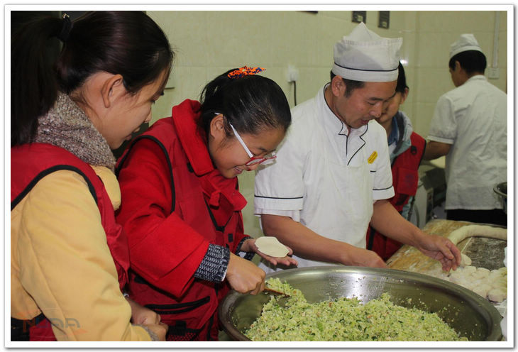 用90分钟准备一顿饭 27日凌晨四点,在同学还在睡梦中的时候,志愿者印茜等人就已经来到将军路校区一食堂,在厨师的指导下制作面点。半个小时,一个小时,一个半小时,时间点点滴滴流逝,大家揉着酸痛的肩膀,看着自己的劳动成果,感谢之情不言而喻。没有谁能比此时的他们更明白,什么是辛苦。可能下次再看到这些可口的饭菜,大家的心情肯定会有所变化,这是90分钟努力的成果呵!