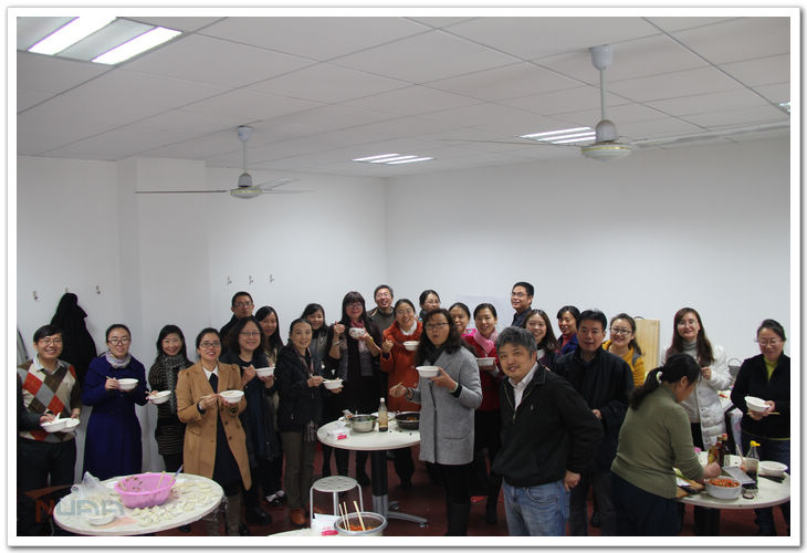教职工们一同品尝着热腾腾的饺子,啧啧称赞大家的劳动成果,还不时就教学、科研、工作以及生活中的问题和经验进行交流。