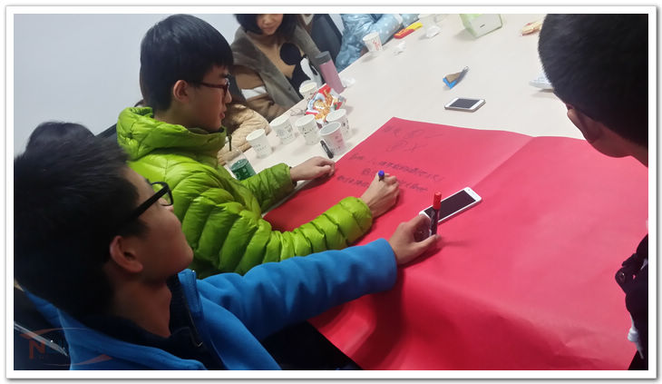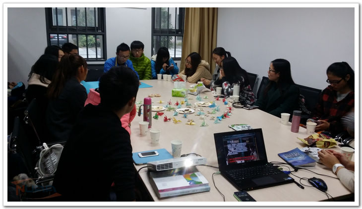 11月28日,人文与社会科学学院2014级本科生相聚在107活动室,举行本学期第一次“约会吧”沙龙活动。这也是学院107活动室自99级法学校友捐赠装修后迎来的首次学生活动。本次活动由14级中心组承办,“将素质能力进行到底,从爱情说开去”是这次沙龙的主题。 “约会吧”沙龙活动自2013年9月起开办,美食、演讲与口才、旅游等是以往“约会吧”的话题。与往次不同,本次“约会吧”采取线上征集话题的方式,经过重重投票,最终确定以“爱情”作为本次沙龙的约谈对象。自主的选题,自主的准备,同样的,沙龙也在自主的谈论中拉开了帷幕。创新的布置,精彩的分享,热闹的互动,创意十足的面包绘画……“约会吧”沙龙在交流分享的基础上加入了新的元素。在激烈的讨论和互动中,同学们更注重的不是“爱情”本身,而是与人相处、处理事情的方式和能力。