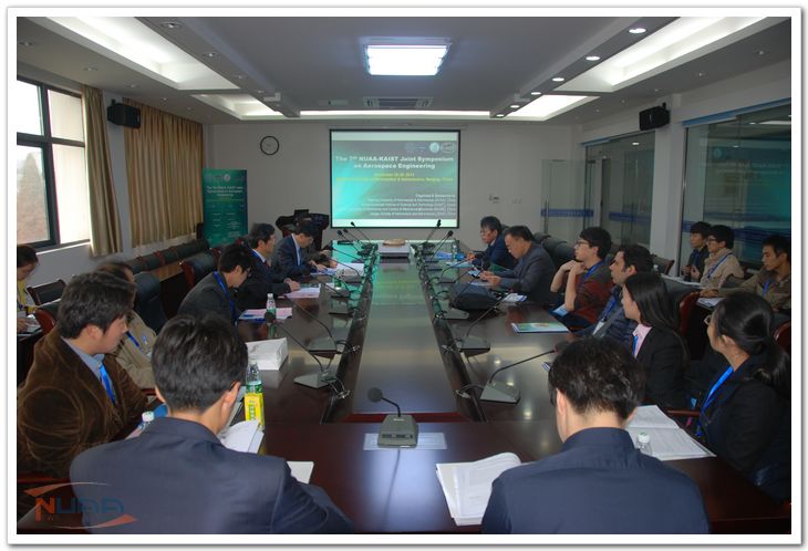 第七届NUAA-KAIST航空技术交流论坛(The 7th NUAA-KAIST Joint Symposium on Aerospace Engineering)于2014年11月28日至29日在南京航空航天大学举行。会议由南京航空航天大学、韩国科学技术院、机械结构力学及控制国家重点实验室及江苏省航空航天学会联合主办,南京航空航天大学承办,会议得到南京航空航天大学、韩国科学技术院、机械结构力学及控制国家重点实验室及江苏省航空航天学会等单位的大力支持。参会代表近30人,其中韩方为3名教师及7名学生组成的代表团。 大会开幕式由航空宇航学院副院长沈星教授主持,我校校长助理熊克教授、韩国航空领域专家In LEE教授分别代表南航和韩国科学技术院致词。韩国科学技术院Han-Lim CHOI教授、南京航空航天大学闫再友教授、江苏特聘教授卿海教授等3位学者分别作了特邀报告。之后两校的14名学生代表在会议期间进行了交流发言。