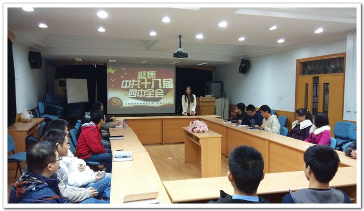 2014年12月4日下午在能源与动力学院三楼报告厅,能源与动力学院研究生在辅导员张光磊老师的指引下,同二院硕14级控制党支部和硕14级车辆党支部成功举办了学习和思考十八届四中全会沙龙系列第三次活动之十八届四中全会给社会各界尤其是广大人民群众带来的影响。 本次沙龙活动上,大家就第十八届四中全会给社会各界尤其是广大人民群众带来的影响进行了深刻的思考,并对此问题发表了自己的看法。首先由控制方向党支书王晶同志提到了十八届四中全会的主要内容,并就会议上的主要决议及问题进行了有奖问答环节,在此环节同志们表现积极。接着大家又观看了一个“解读十八届四中全会”的主题短片,短片结束后同志们根据中国现阶段存在的问题以及四中全会的积极发言。首先,王浩宇同志提出了反腐以及现在制度上的漏洞问题,现在的领导集体在反腐倡廉问题上做出的众多决议及行动,强调了此问题的重要性积以及法律的不可违抗性,现阶段不能有所包庇,虽然现在有很多“大老虎”,但是亡羊补牢为时未晚。聂友伟同志由反腐提到了现阶段制度及干部作风上的问题,提到党派关系和党派之争,畅想了现在领导班子的执政新理念,不是在表面上做文章,而是真实的为人民谋利,大力改革。王帅同志由改变观念的问题提到了国内外高校招生政策的异同,分析了政策利用方式的不同,并分析了政企分开管理的必要性和重要性。罗震同志补充了政策的公开透明化问题,公民合法拥有言论自由以及人大代表的发言采用途径......