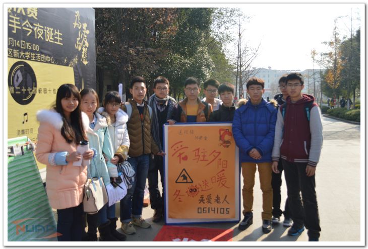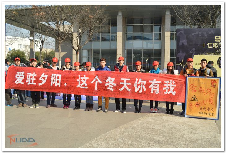“爱驻夕阳,这个冬天你有我”,这是南航材料科学与技术学院的同学们在为敬老院的老人们收集祝福,地上的横幅已被密密麻麻的签名覆盖。一名班委告诉记者:“这个横幅我们会送到敬老院去,活动所有的物资都是同学们兼职赚钱购买的,剩下的钱会用于为老人们购买礼物。”