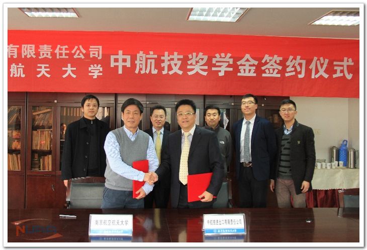 12月4日下午,中航技奖学金签约仪式在我校明故宫校区举行。中航技进出口有限责任公司党委副书记唐建明,校党委副书记、副校长陈夏初,中航技进出口有限责任公司人力资源部部长唐星,研工部副部长孙占久,校学生处副处长陈修文、许爱华,中航技进出口有限责任公司人力资源部主管李钧以及获得2014年中航技奖学金的12名本科生及研究生出席了本次签约仪式。由唐建明与陈夏初代表中航技进出口有限责任公司和南京航空航天大学共同签署了新的奖学金协议。